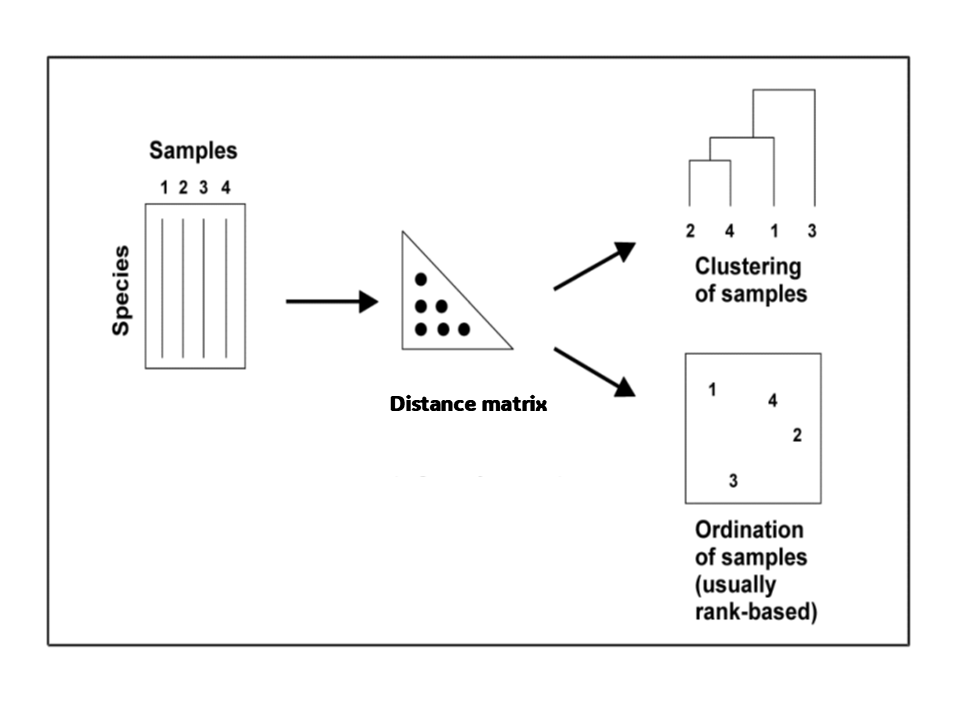 We can quantify the distance between any pair of sampling units to build a Distance Matrix.