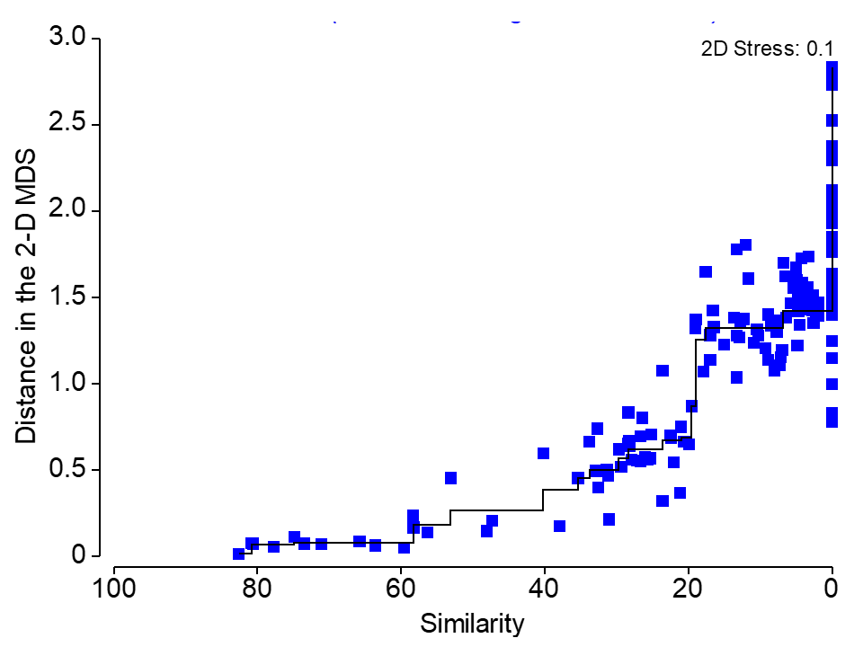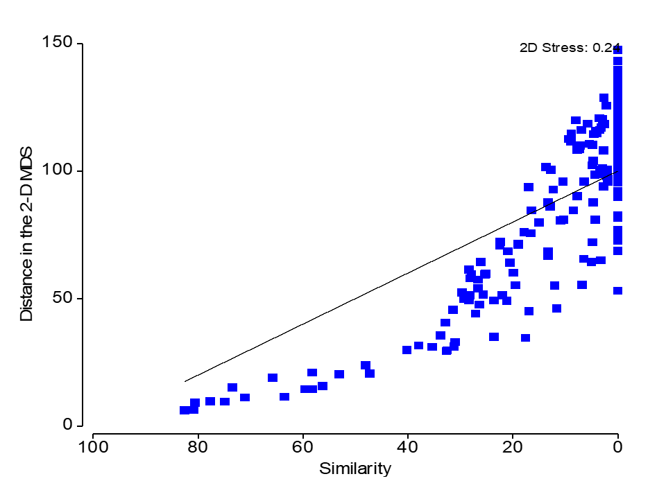 The lower the stress, the more the MDS plot reflects real distance structures in the data.